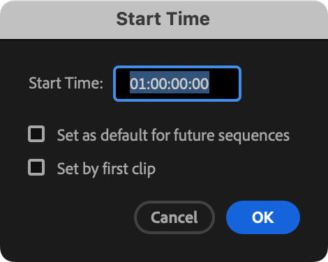 However! If you ever need to set starting timecode to a different number, you can. Here’s how.