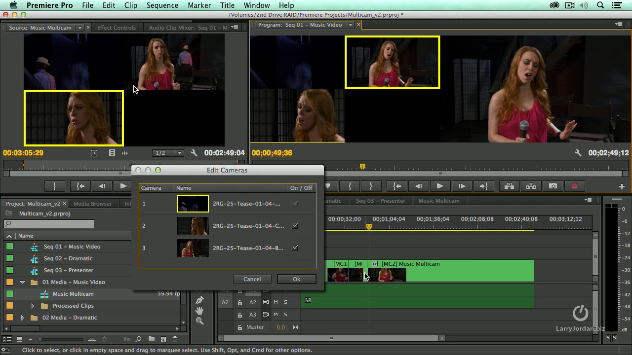 In this video training, host Larry Jordan, creates three different multicam projects: Music, drama, and a presenter with slides (which is a very cool use of the technology in an unexpected way). He explains what multicam editing is, how to set up and edit a sequence in Premiere Pro, then how to trim, add effects and add transitions to your edited sequence.